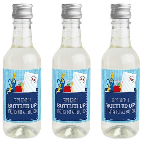 Big Dot of Happiness Funny Colorful - Mini Wine and Champagne Bottle Label Stickers - Teacher First Day of School Gift for Women and Men - Set of 16